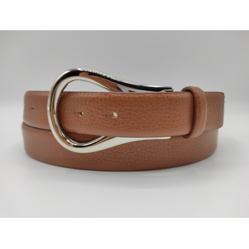 Eleganter Frauengürtel aus echtem Leder, mit Nickel-Schnalle glänzig.