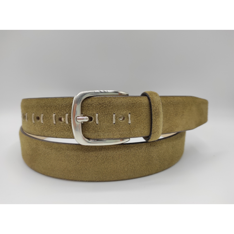 Elenganter Gürtel mit Pfiff aus echtem Wildleder mit handangebrachten Nähten, Schnalle aus Metall Chromeffekt.