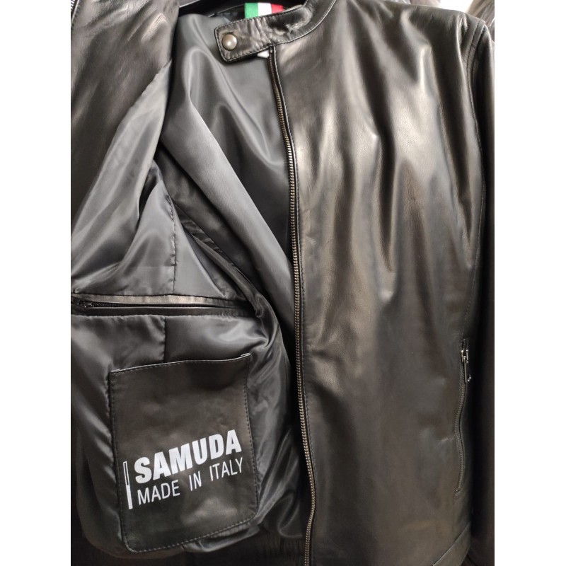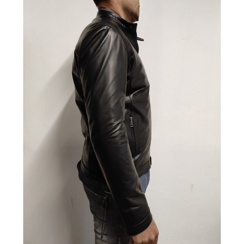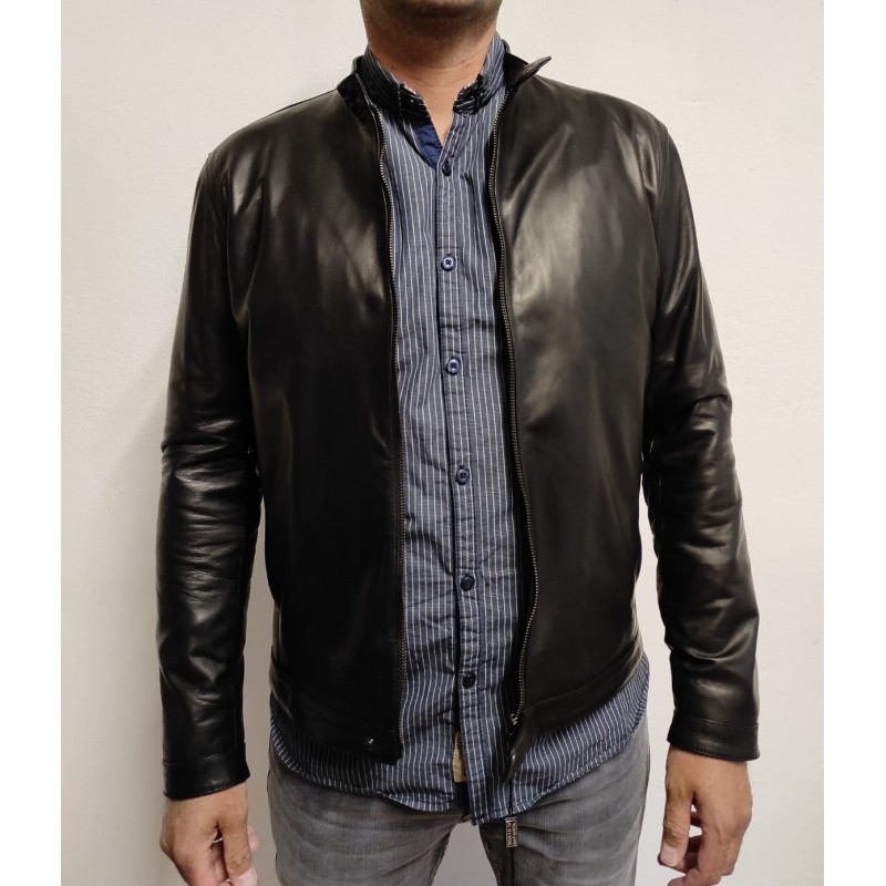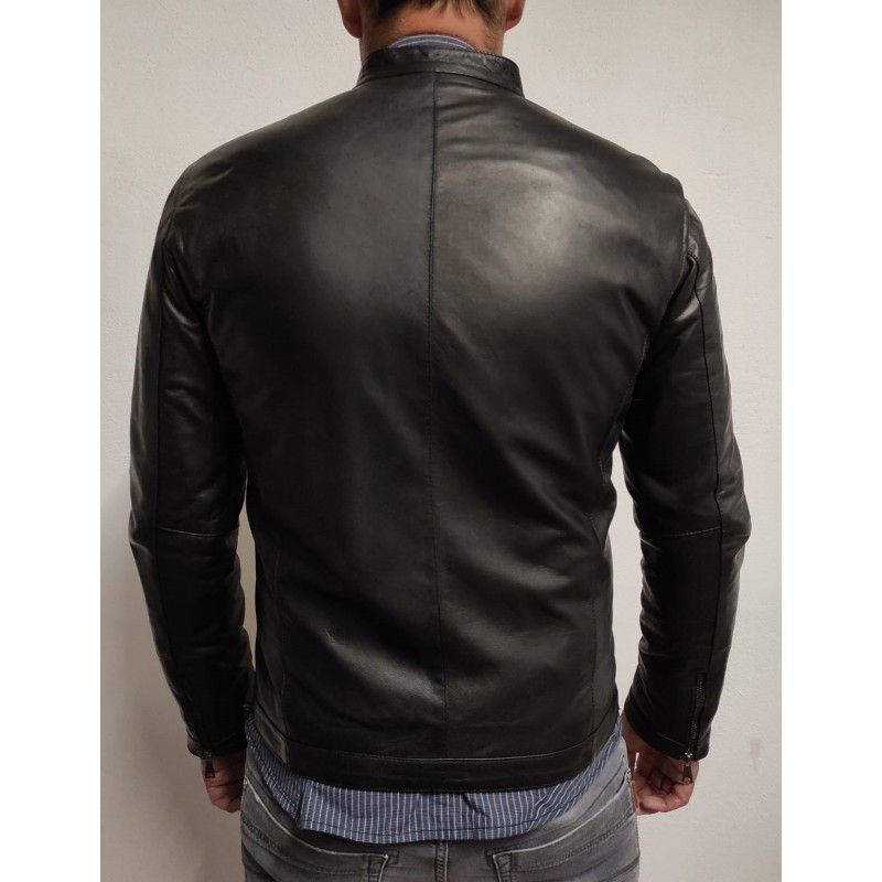 Schlichte, essenzielle, zeitlose, elegante Lederjacke aus durchgefärbtem Lammleder.
