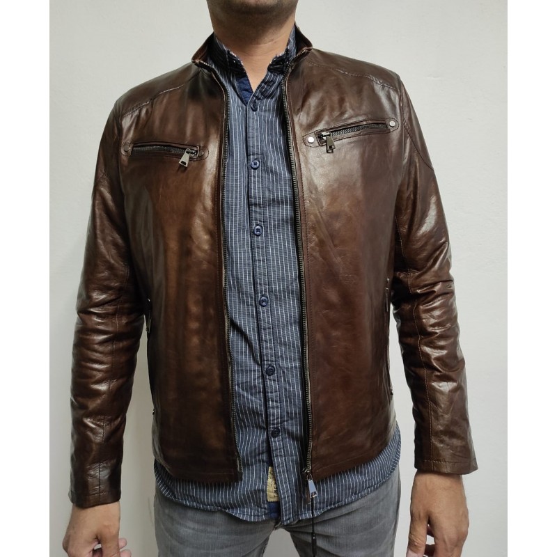Herrenjacke aus echtem Lammleder mit einzigartiger Lederstruktur.