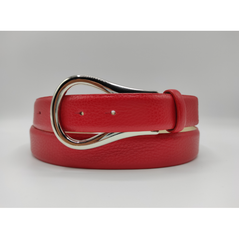 Elegante cintura da donna in vera pelle, con fibbia in nickel lucido.