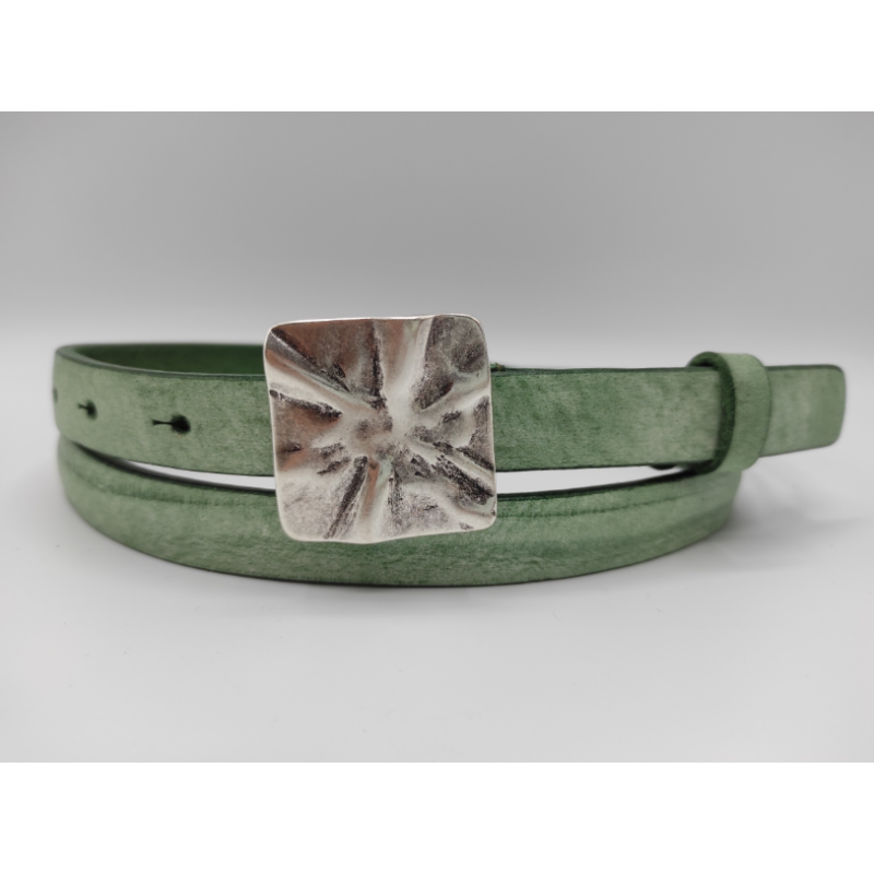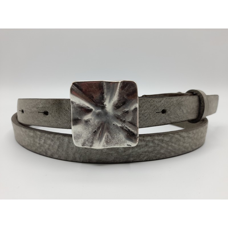 Cintura moda in vera pelle con fibbia artistica in argento anticato fatta a mano.