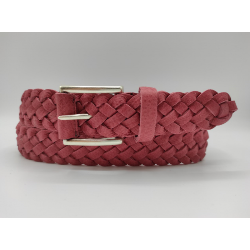 Cintura moda intrecciata in vera pelle, misura facilmente regolabile per l assenza di fori, fibbia in metallo effetto argento antico.