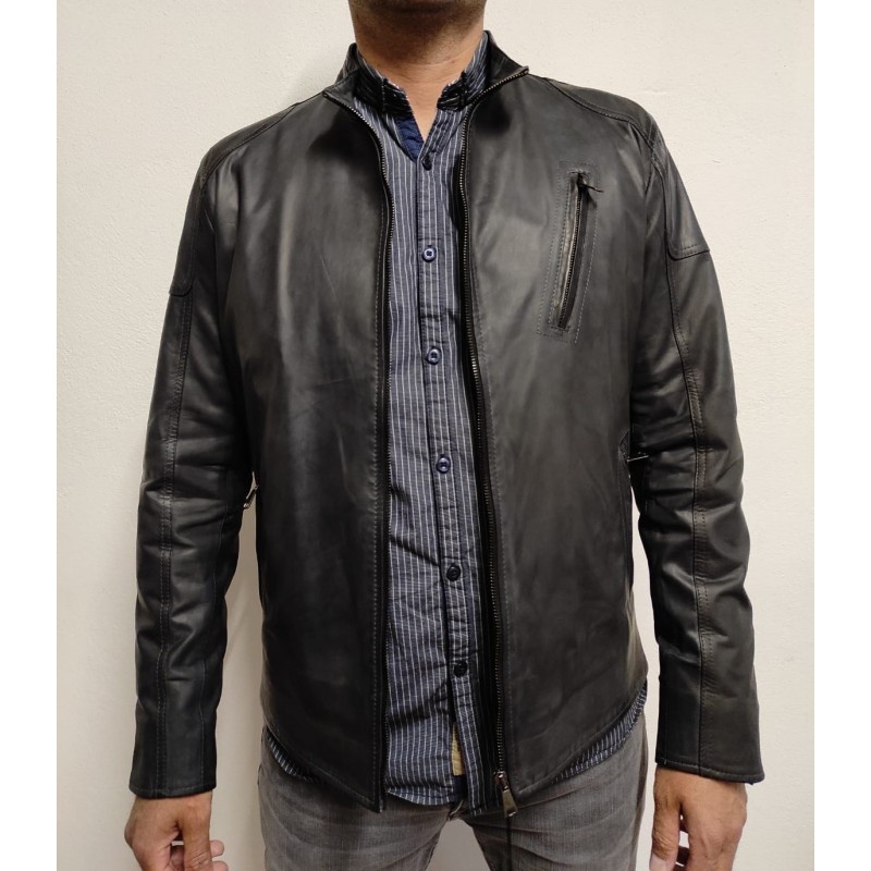 Giacca in vera pelle di agnello, taglio elegante e sportivo. Vestibilità particolarmente riuscita, molto adatta a corpi snelli e atletici.