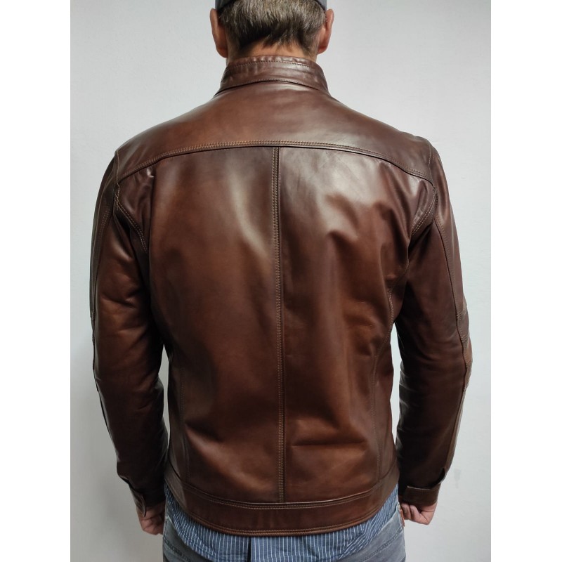 Giacca sportiva, elegante, per ogni occasione, in vera pelle di agnello tamponata a mano.