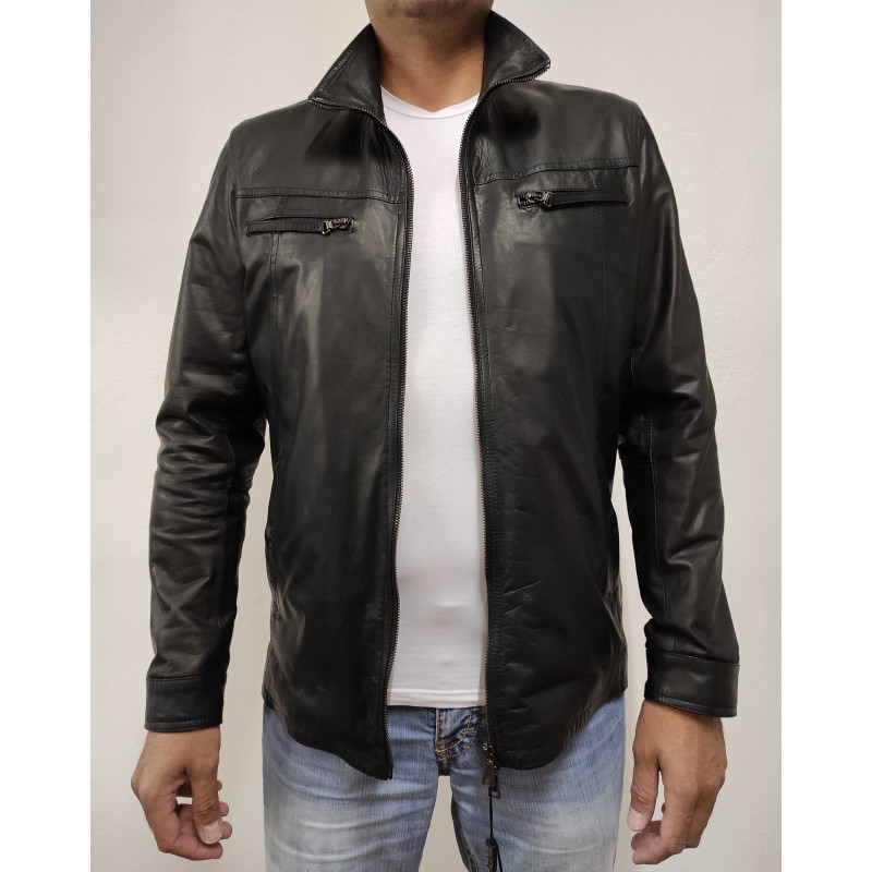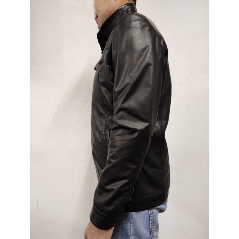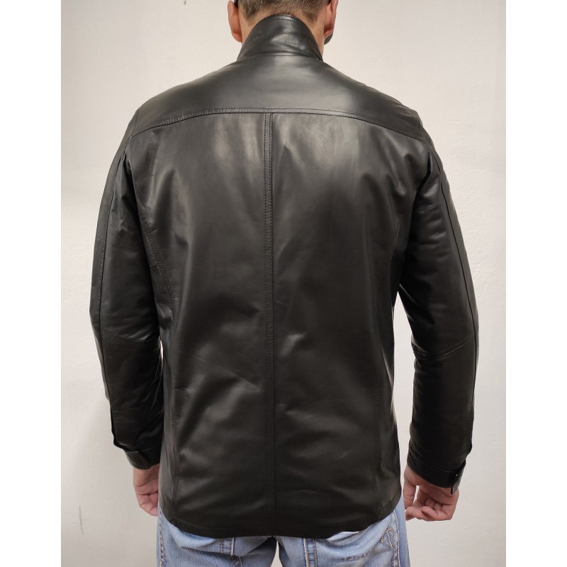 Giacca in vera pelle di agnello, taglio elegantemente intramontabile. Vestibilità particolarmente riuscita, molto adatta a corpi snelli e atletici.