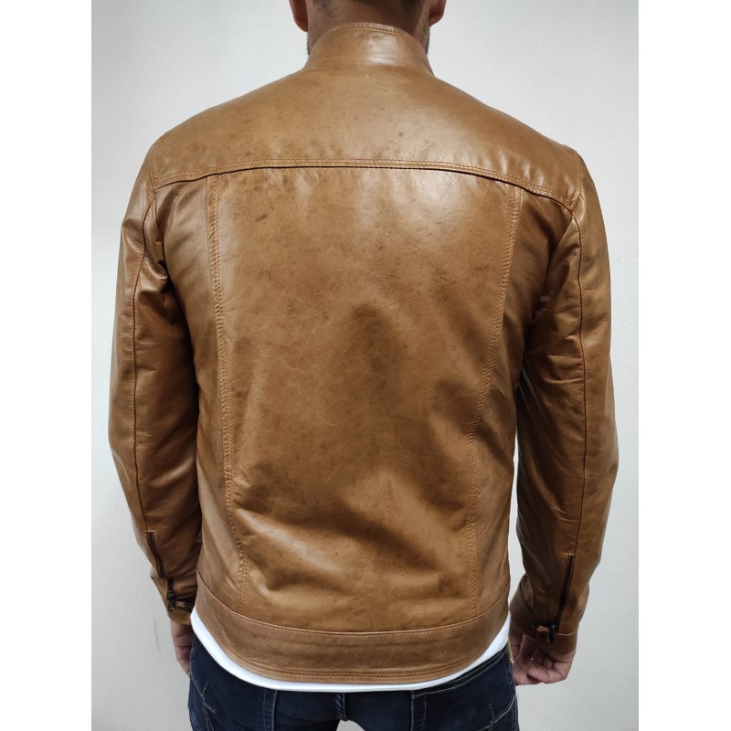 Giacca in pelle, sportiva, elegante, per ogni occasione, in vera pelle di agnello con superficie oleata in ottica vintage.